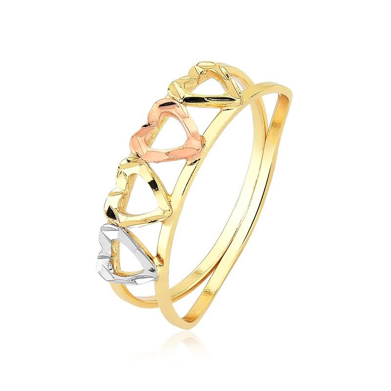 Anel com Corações Três Cores: amor em cada detalhe