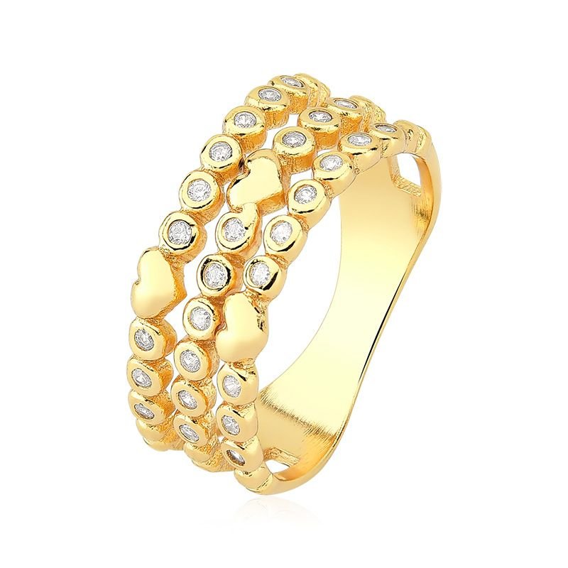 Anel Elos Cravejados com Mini Corações Folheado a Ouro 18k