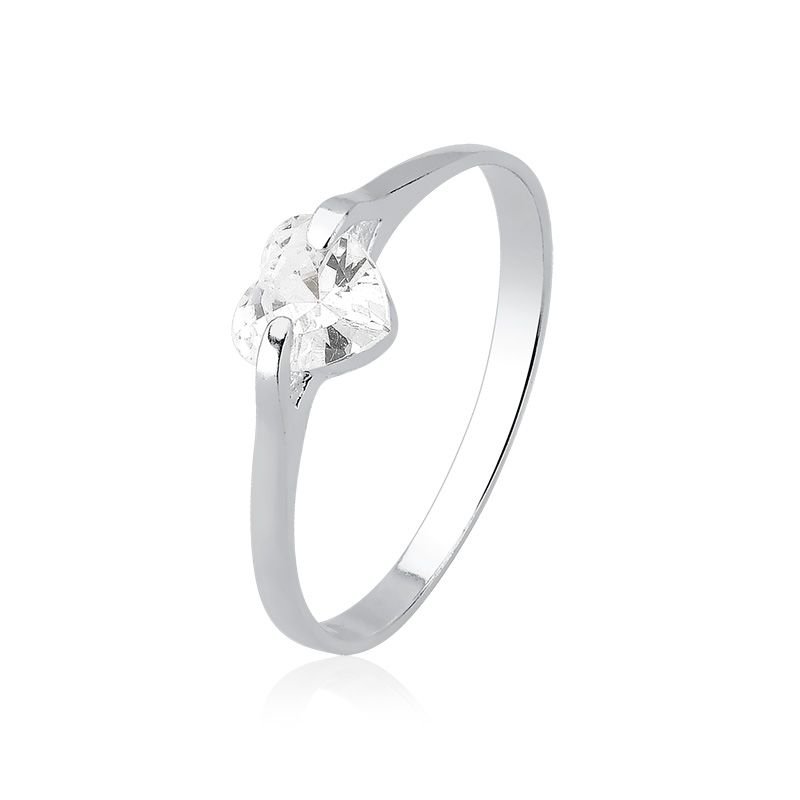 Design Delicado do Anel Solitário Coração Prata
