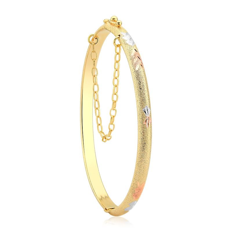 Bracelete Redondo Fosco com Três Tons de Ouro