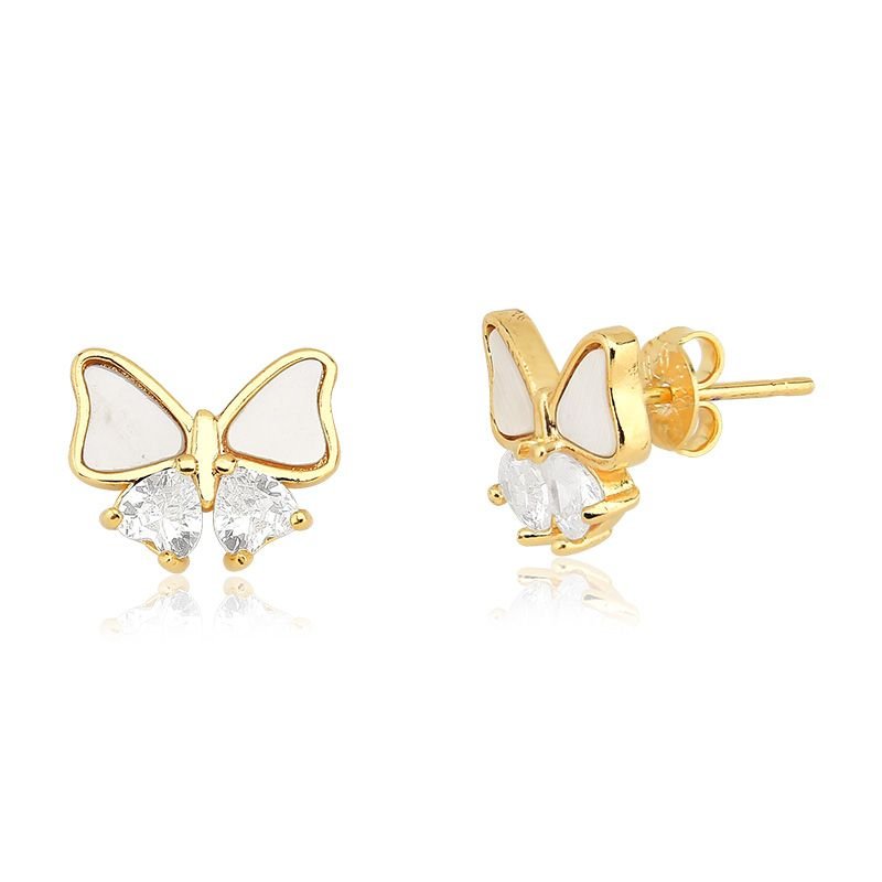 Brinco de Borboleta Com Zircônias e Madrepérola