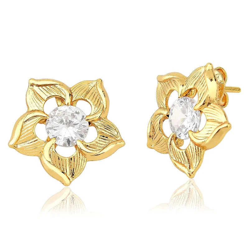 O brinco de flor pode ser usado sozinho para destacar a delicadeza ou combinado com outros brincos de zircônias e brincos dourados femininos da sua coleção.