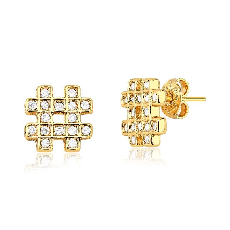 O brinco hashtag dourado é moderno e delicado, ideal para quem busca acessórios cheios de personalidade. Seu design em formato de hashtag, cravejado com microzircônias, oferece brilho discreto e sofisticado.