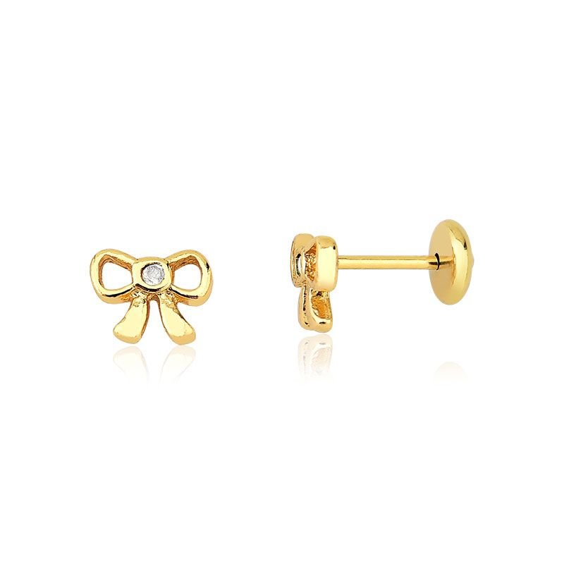 Este brinco infantil lacinho tarraxa baby foi criado para trazer charme e delicadeza ao dia a dia das meninas. Com zircônia central que reflete a luz, ele transforma qualquer visual em algo especial. O tamanho de aproximadamente 0,7 cm garante conforto sem pesar na orelha.