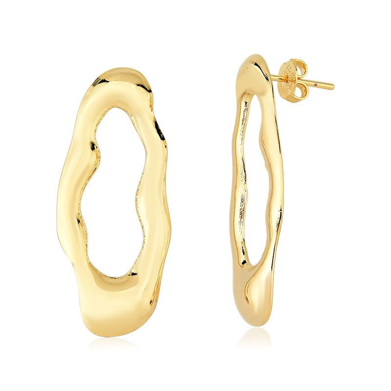 Descubra a elegância natural do brinco orgânico oval folheado, ele tem curvas suaves e proporções harmônicas, essa joia contemporânea combina leveza, brilho duradouro e um design fluido que valoriza o contorno do rosto com sofisticação.