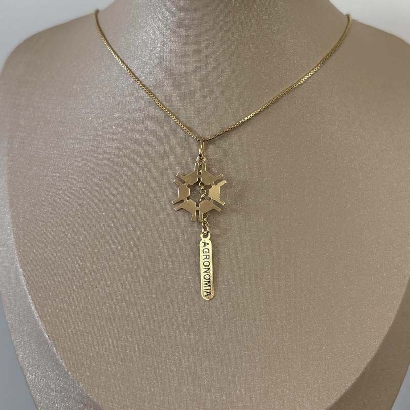 O colar de agronomia folheado a ouro é versátil e pode ser usado em diversas ocasiões. Combine-o com brincos pequenos para um visual discreto e elegante, ou com colares de diferentes tamanhos para criar um mix moderno e cheio de estilo. Ele se adapta tanto ao ambiente profissional quanto a eventos sociais, trazendo um toque de sofisticação natural.