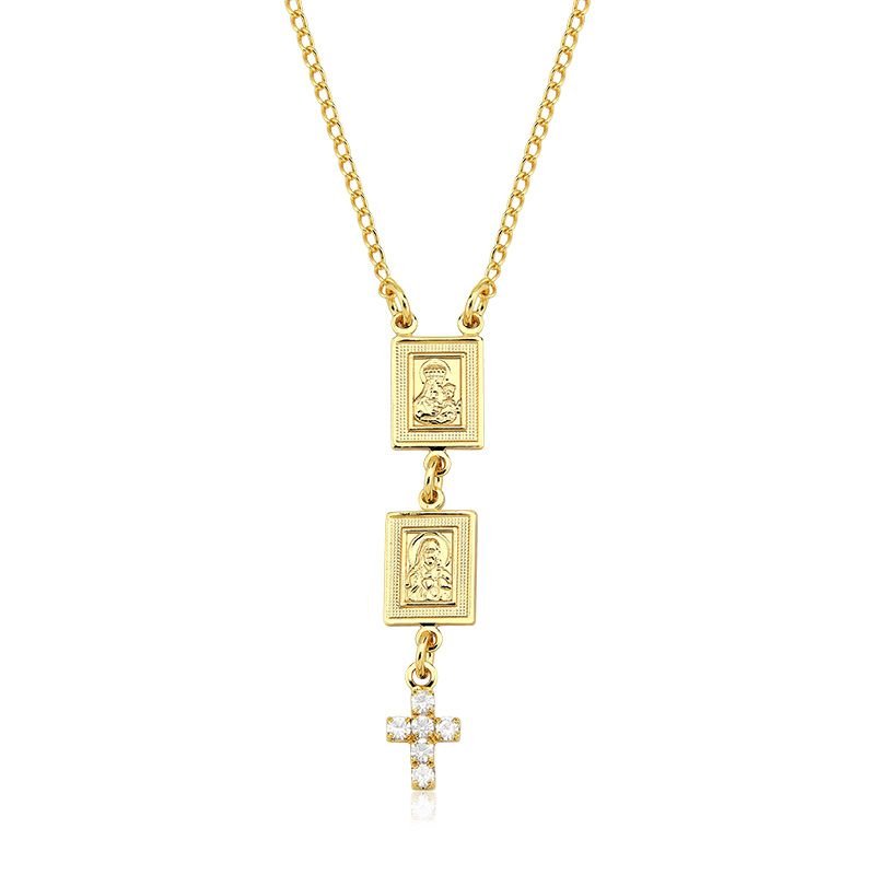 Colar Escapulário Frontal Feminino Folheado a Ouro 18k